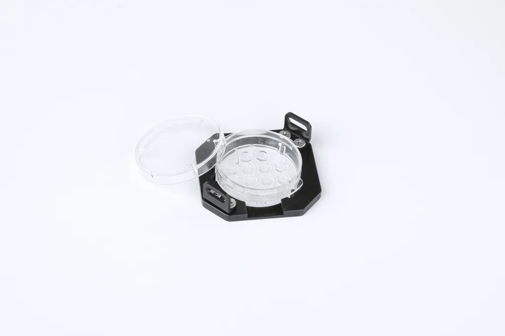 The CCM-iBIS uses the EmbryoGrid. It is designed to be optimized for the better results that is contributed with the group culturing of embryos as well as the use for Time-Lapse. The EmbryoGrid is commercially available with affordable price from Astec. Please contact your local Astec representatives for more information.